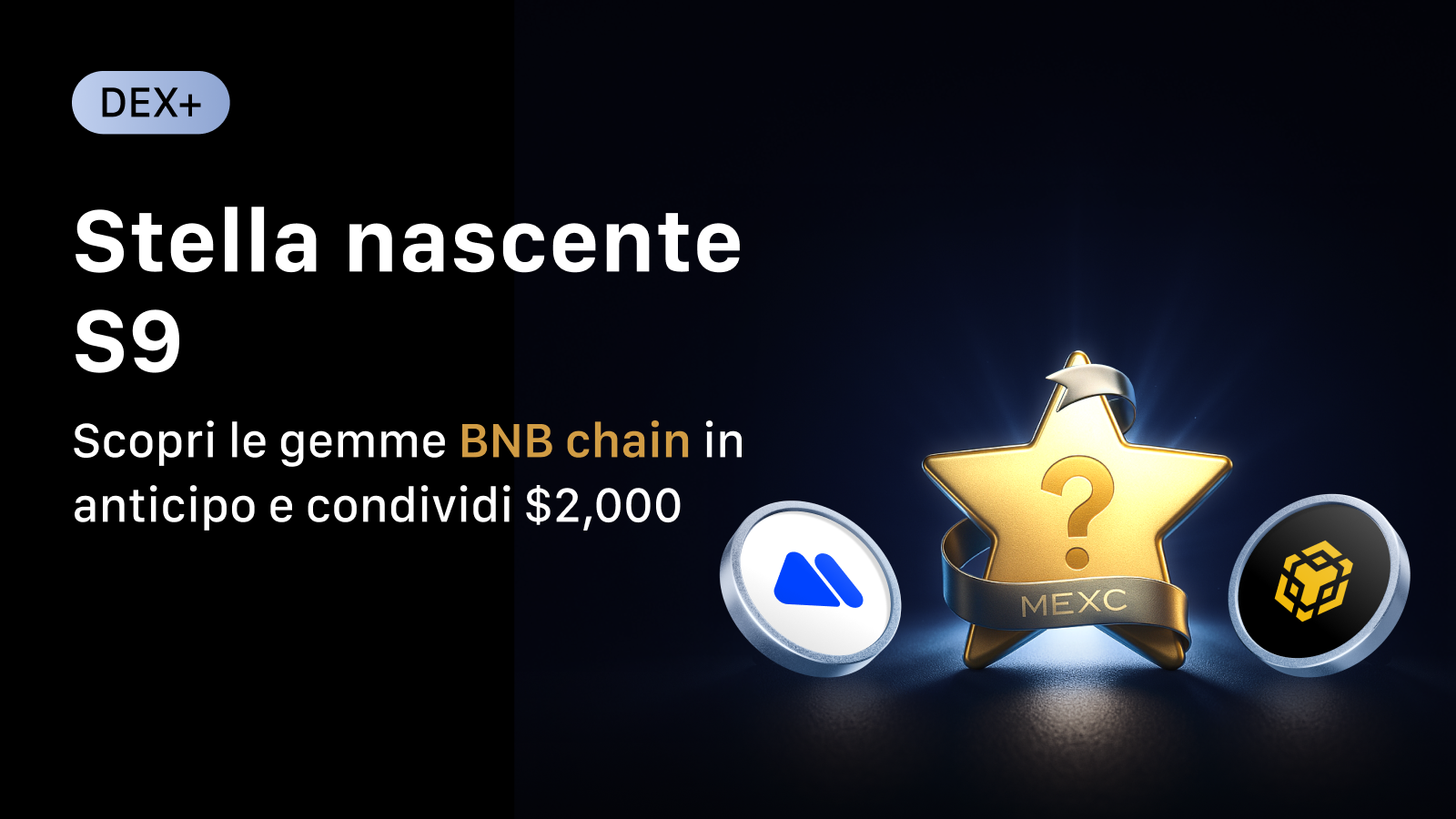 Stella nascente Stagione 9: BNB Chain Edition è arrivata. Il tuo trading potrebbe essere quello che porterà un progetto promettente ai massimi livelli. Sostieni i token on-chain ad alto potenziale e aiutali a guadagnarsi un posto sui mercati spot e futures di MEXC.