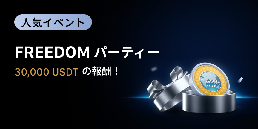 MEXCのイベント「FREEDOMパーティー」開催!最大30,000 USDTの賞金プールを山分けするチャンスです!すべてのユーザー様が参加可能です。