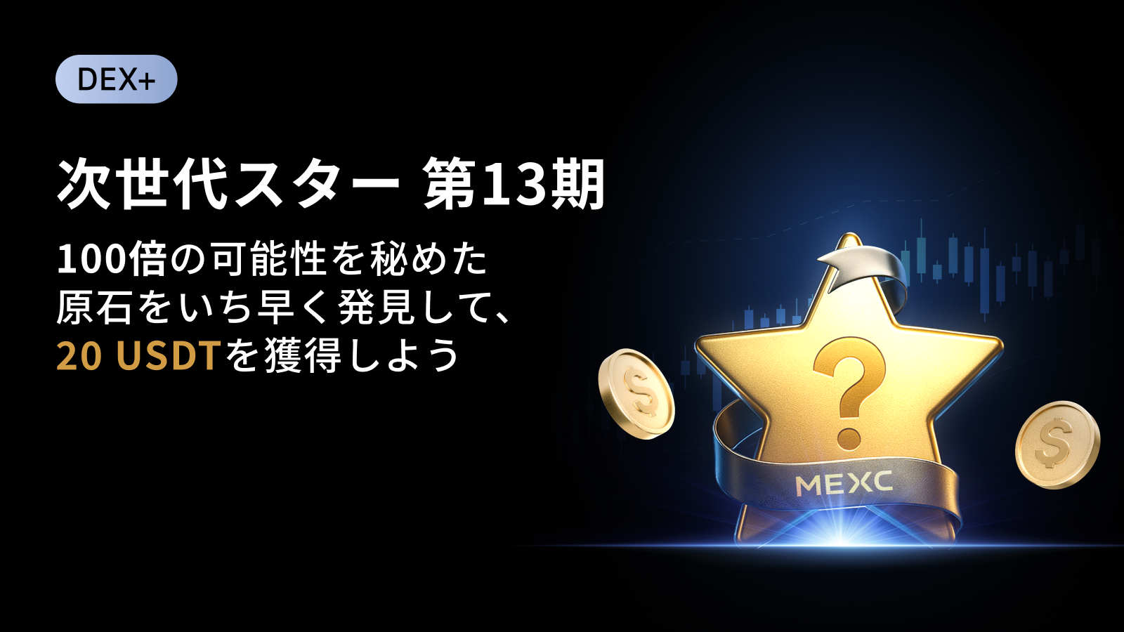 次世代スター 第13期が始まりました!有望プロジェクトをいち早く発見して、100倍成長のチャンスをつかみましょう。第13期開催を記念して、特別に2,000 USDTの賞金プールをご用意しました!今すぐイベントに参加して、20 USDTの報酬を獲得し、次のマーケットの波に乗ろう。