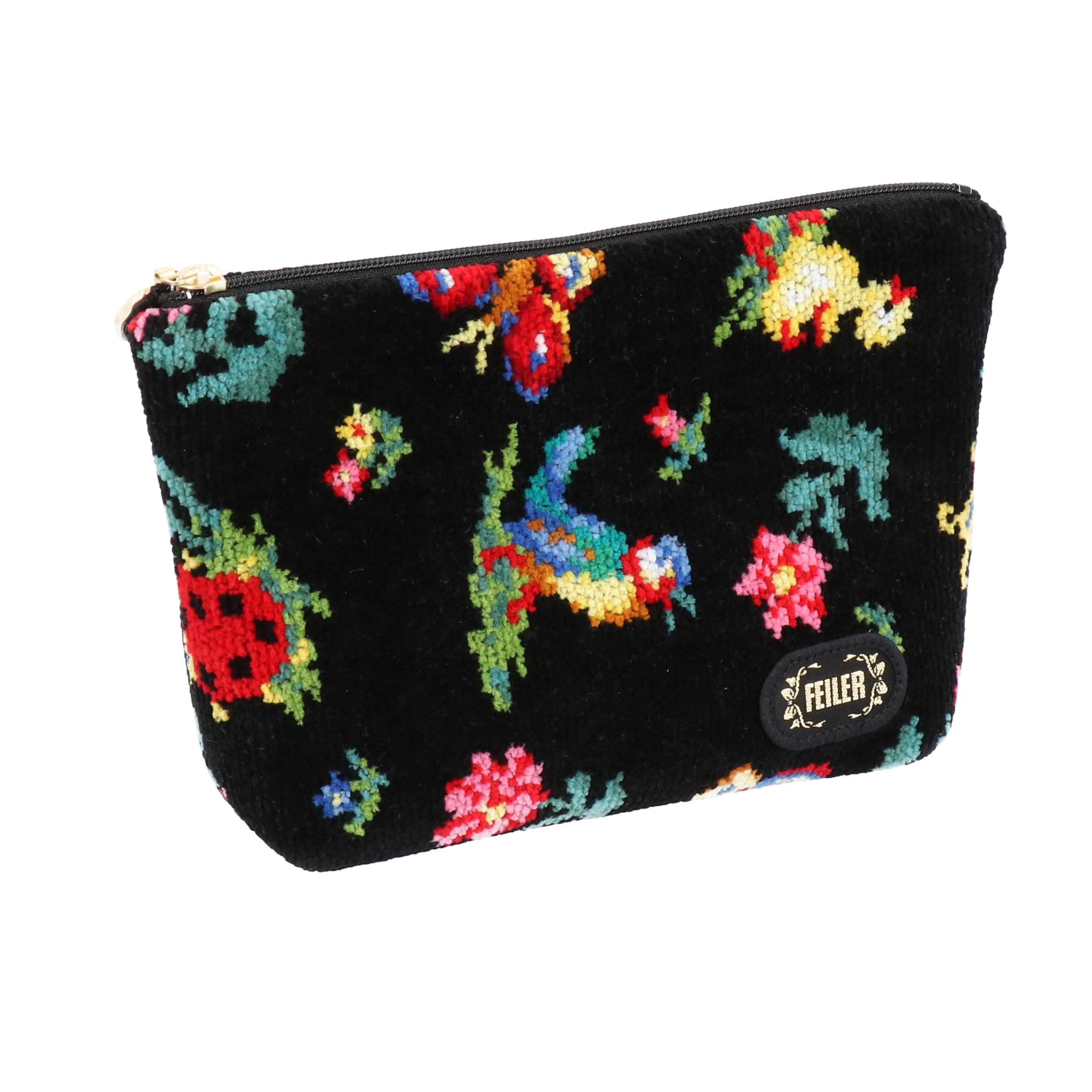 フェイラーのメイクポーチはてんとう虫・小鳥・蝶などの小さな生き物をクラシカルに描いた柄が特徴ですが、やや好みが分かれる印象。モニターからは「品がよくかわいい」「大人でも使いやすい」「やや古くさい印象がある」などの声が挙がりました。一つひとつ柄の配置が異なるのは魅力的ですが、ノスタルジックなデザインは好みを分けそうです。使いやすさの検証では高評価に。中が仕切りのように分かれているうえ、バッグにしまいやすい柔らかい素材がとくにメリットです。また、見た目以上に中の空間が広いので、アイシャドウやファンデーションなどの大きめのコスメも入れやすいといえます。