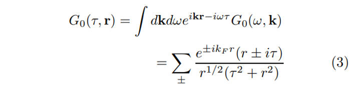 \ Upon Fourier transforming (5) one finds that at the largest spatial separations the equal-time propagator demonstrates a power-law behavior