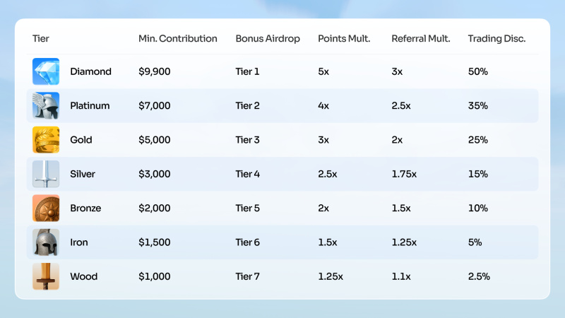 Quanto mais cedo o usuário contribuir, maior será seu tier, aumentando a chance de alocação completa, além de desbloquear bônus e benefícios vitalícios.