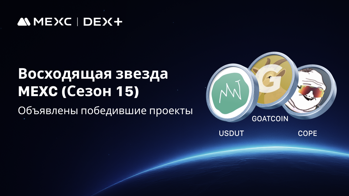 Поздравляем USDUT, GOATCOIN и COPE с победой в конкурсе «Восходящая звезда MEXC Сезон 15» и получением места в листинге!